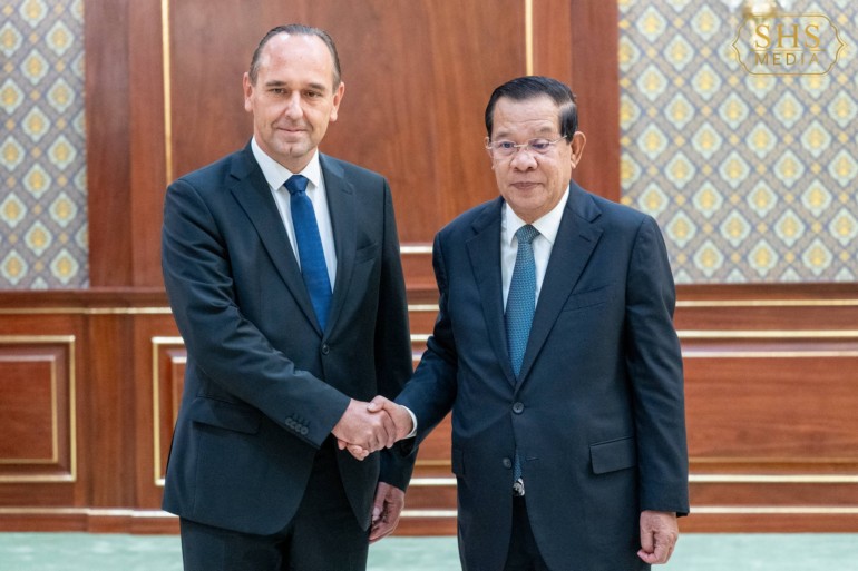សម្តេចតេជោ ហ៊ុន សែន អនុញ្ញាតឱ្យ ឯកឧត្តម អេឡិចសិនដឺ មីខូវស៊ិន (Alexander Micovčin) ឯកអគ្គរដ្ឋទូតថ្មីនៃសាធារណរដ្ឋស្លូវ៉ាគី ប្រចាំនៅកម្ពុជា ចូលជួប និងប្រគល់សារតាំង