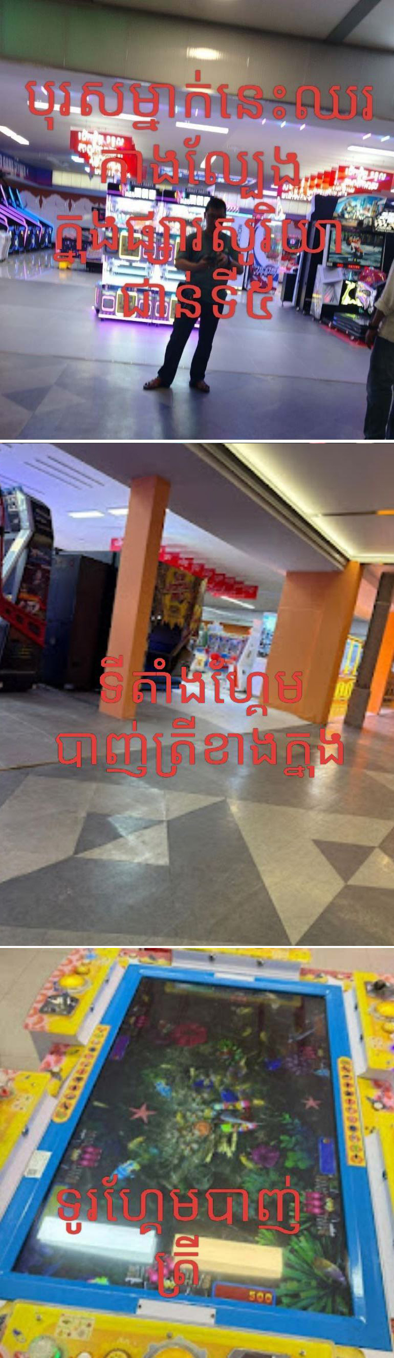 ល្បែងបើកដំណើរការវិញហើយបងប្អូនណាចូលចិត្តមកលេងបាន..! ល្បែងហ្គែមបាញ់ត្រី នៅផ្សារទំនើបសូរិយា(ជាន់ទី៥) កំពុងពង្រក់ស្មារតីសិស្សគេចមិនទៅសាលារៀន និង ពលរដ្ឋមួយចំនួនធំ!!សូមលោក ជា ខេមា អភិបាលខណ្ឌដូនពេញ ចុះចាត់វិធានការបង្រា្កបផងទាន , សង្កាត់ផ្សារថ្មី២ ខណ្ឌដូនពេញ រាជធានីភ្នំពេញ