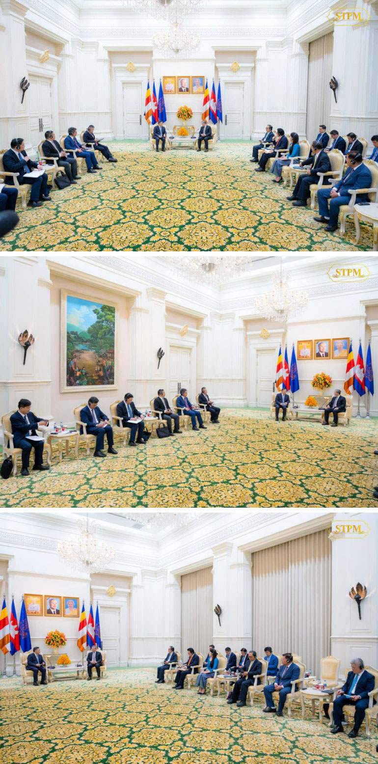 ក្នុងឱកាសនៃជំនួបនេះ, លោកប្រធានក្រុមហ៊ុន CCCC បានថ្លែងអំណរគុណយ៉ាងជ្រាលជ្រៅចំពោះសម្ដេចធិបតី ដែលបានឆ្លៀតពេលវេលាដ៏មមាញឹកអនុញ្ញាតឱ្យរូបលោក និងសហការីចូលជួបសម្ដែងការគួរសម និងពិភាក្សាការងារនៅពេលនេះ។ លោកប្រធានក្រុមហ៊ុនបានគោរពជម្រាបជូនអំពីប្រតិបត្តិការអាជីវកម្មរបស់ក្រុមហ៊ុន ទាំងក្នុងប្រទេសកម្ពុជា និងលើសកលលោក។ ជាមួយគ្នានេះ លោកបានថ្លែងអំណរគុណដល់រាជរដ្ឋាភិបាល ក៏ដូចជាក្រសួងស្ថាប័នពាក់ព័ន្ធ ដែលតែងតែផ្តល់ការគាំទ្រ និងកិច្ចសហប្រតិបត្តិការយ៉ាងល្អប្រសើរ ដែលធ្វើឱ្យគម្រោងនានារបស់ក្រុមហ៊ុននៅកម្ពុជាសម្រេចបានជោគជ័យ។ លោកប្រធានក្រុមហ៊ុនបានបញ្ជាក់ពីការប្ដេជ្ញាចិត្តយ៉ាងមុតមាំថា ក្រុមហ៊ុននឹងបន្តអនុវត្តគម្រោងនានានៅកម្ពុជាឱ្យសម្រេចបានជោគជ័យតាមផែនការដែលបានគ្រោងទុក ដោយធានាបាននូវគុណភាព ជាមួយនឹងការទទួលខុសត្រូវចំពោះបរិស្ថាន និងសង្គម។ លើសពីនេះ លោកក៏បានគោរពជម្រាបជូនសម្ដេចធិបតីអំពីបំណងស្វែងរកឱកាសវិនិយោគលើវិស័យថ្មីៗមួយចំនួនបន្ថែមទៀត រួមមាន៖ ថាមពលស្អាត, ការគ្រប់គ្រង និងកែច្នៃសំណល់ជាថាមពលអគ្គិសនី, ការអភិវឌ្ឍប្រព័ន្ធចម្រោះទឹកស្អាត, ការកសាងប្រព័ន្ធអេកូស៊ីឌីជីថល (Digital Ecosystem) ជាដេីម។