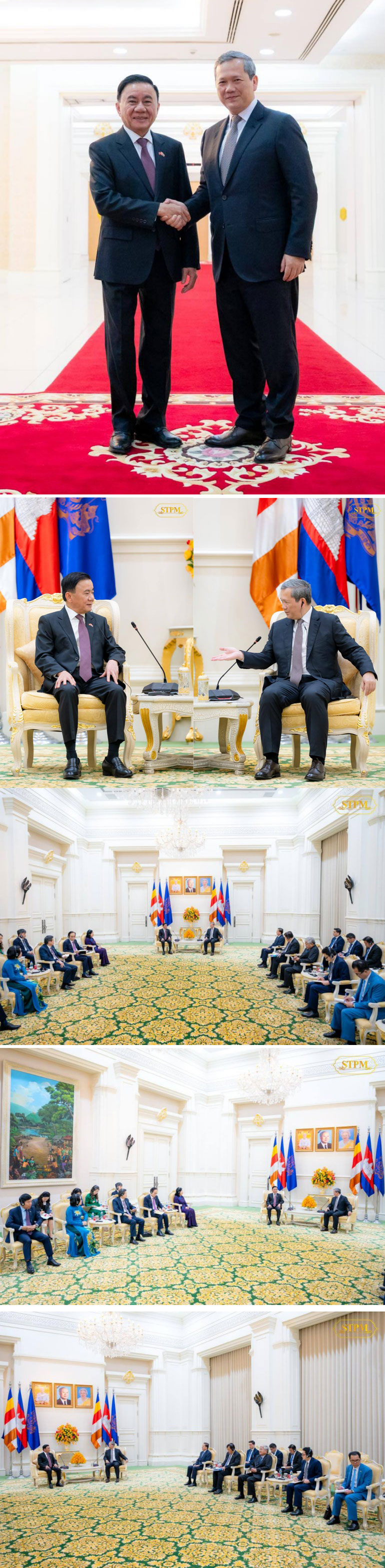 វិមានសន្តិភាព-ភ្នំពេញ ៖ នាព្រឹកថ្ងៃទី១០ ខែមេសា ឆ្នាំ២០២៦, សម្ដេចមហាបវរធិបតី ហ៊ុន ម៉ាណែត នាយករដ្ឋមន្ត្រីនៃព្រះរាជាណាចក្រកម្ពុជា បានជួបពិភាក្សាការងារជាមួយ ឯកឧត្តម ត្រិន កឹមទូ សមាជិកការិយាល័យនយោបាយ និងជាសមាជិកប្រចាំការគណៈលេខាធិការមជ្ឈិមបក្សកុម្មុយនីស្តវៀតណាម នៅវិមានសន្តិភាព ។
